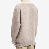 Crafted in Japan, this 5G Distressed Knit Sweater by Children of the Discordance is imbued with a sense of raw beauty. Emphasized with a classic Rib V neck collar and Frayed raw edge cuffs and hem, this sweater is made of 54% Cotton and 46% Acrylic, giving it a unique distressed detail all over.