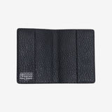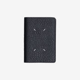 This Maison Margiela passport holder in textured black leather features the brand’s iconic four-stitch detailing. The interior is minimalist, designed for sleek organization of travel essentials.
