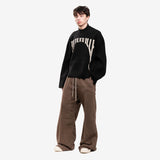 The Porterville Jumbo sweater features a jumbo oversized fit, a wide body, and sleeves with dropped armholes for a relaxed look. It also has a high round neck and a signature knit channel down the center back.