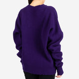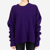 Unravel Project Women's Rib Oversized Chopped Sweater in a rich purple hue offers relaxed vibes with an oversized fit and raw edge detailing. Crafted from 100% cotton for a soft, breathable feel. Perfect for layering or wearing solo for standout style. Made in Italy.