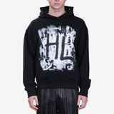 This hooded sweatshirt features a monochromatic scribble logo on the front and subtle distressing, giving the impression of a well-loved garment.